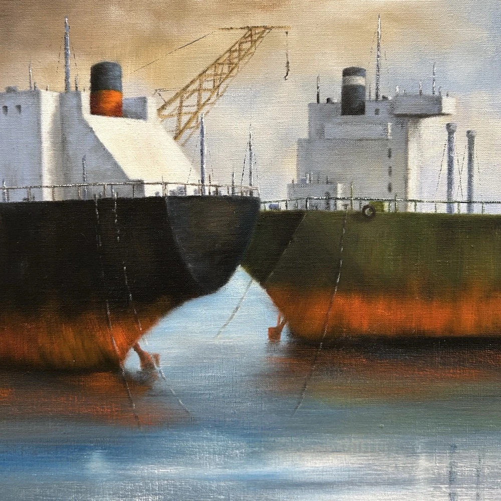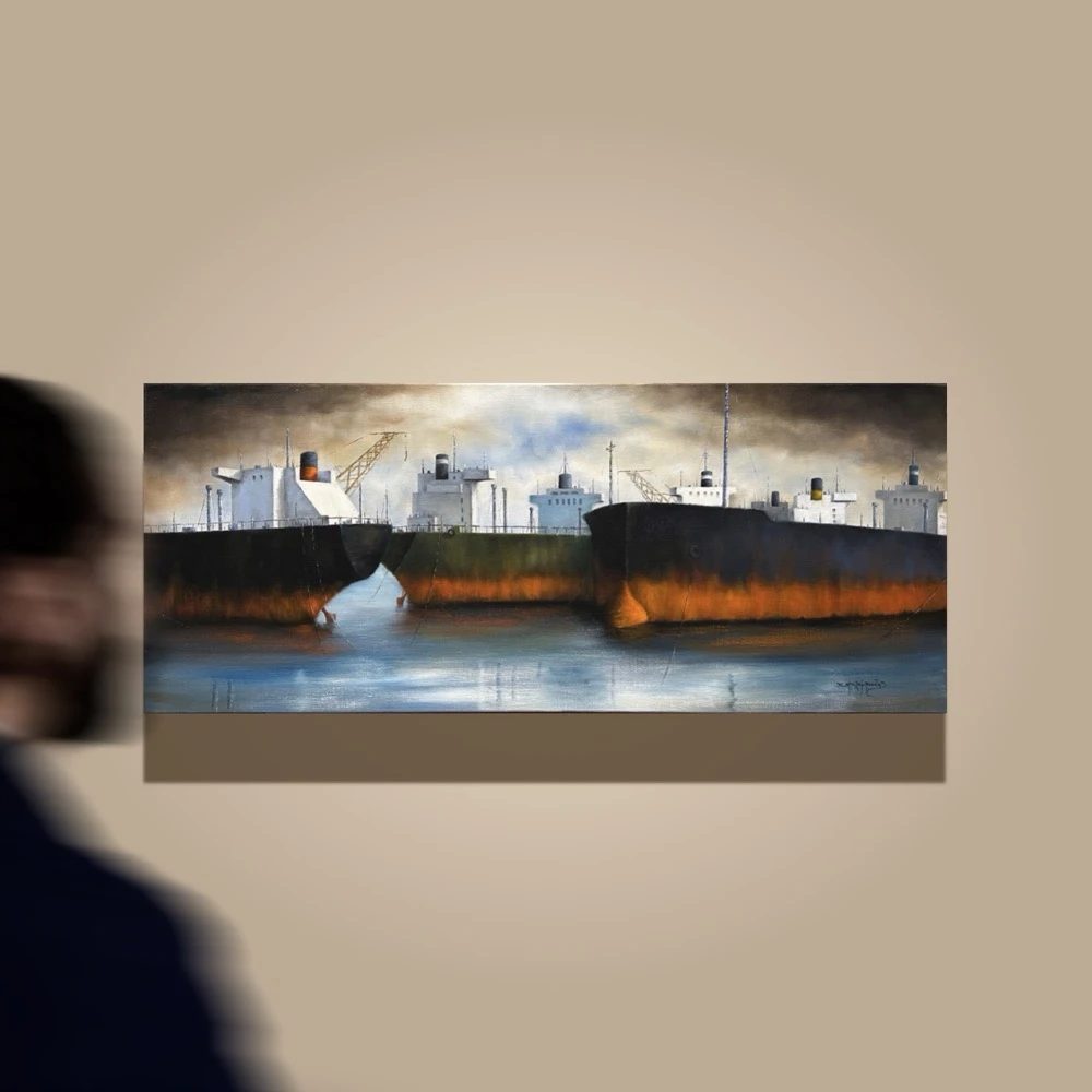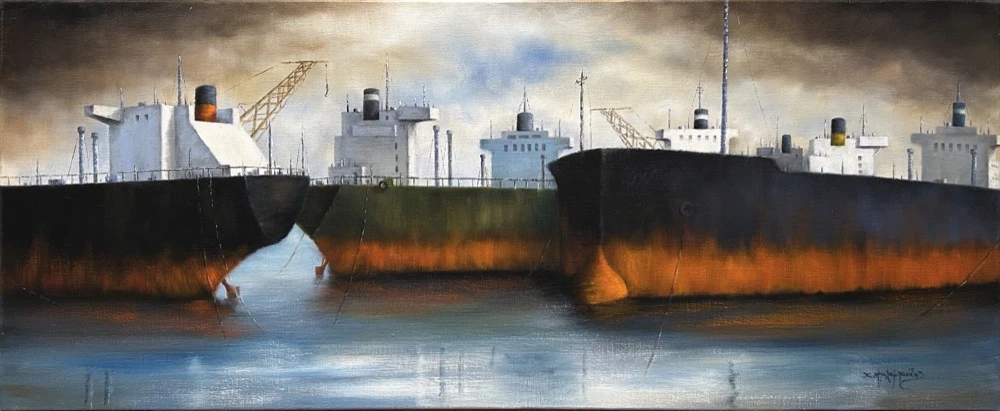 2860-au Balabanidis Christoforos, Tanker, Oil on canvas, 40 x 100 cm